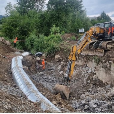 Für die Bauarbeiten ist eine provisorische Umleitung des Dorfbachs über ein Rohr erforderlich. Dieses Vorgehen bedarf