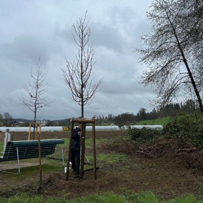 Unter Federführung der Regionale 2025 wurde 2023 das Leitbild Agrarpark Limmattal erstellt. In diesem Rahmen wurde im Gebiet Sandbühl ein Verweilort geschaffen, der nun als Standort für einen dieser Bäume dient.