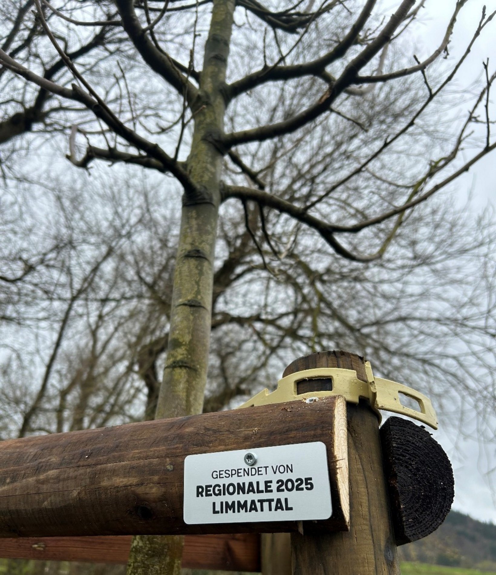 Zum Abschluss der Regionale 2025 erhalten die 16 Trägergemeinden ein besonderes und nachhaltiges Geschenk: Jede Gemeinde wird mit einem standortgerechten, heimischen und klimaangepassten Baum bedacht. Die Bäume tragen eine Plakette mit der Inschrift „Regionale Limmattal 2025“ und stehen sinnbildlich für die gemeinsame Entwicklung der Region.