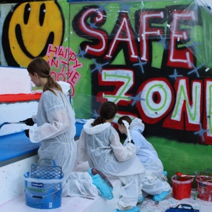 zu entfernen. Die Jugendlichen hatten grosse Freude daran, mit Hochdruckreiniger und professionellem Werkzeug zu arbeiten.