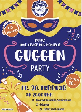 Coole Guggenparty mit 5 Guggenmusiken. Wir freuen uns über zahlreiche, verkleidete Festbesucher.